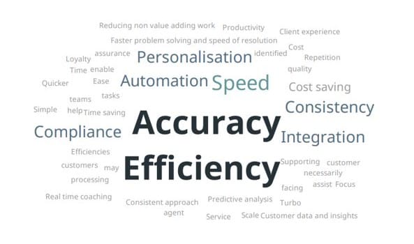 Alongside the perhaps obvious operational benefits including automation and speed, more strategic benefits of Personalisation and Integration were also flagged by our audience recognising that AI can support customer needs and outcomes. Although AI is typically perceived to be about ‘cost reduction’ it is important to factor in that it creates opportunities, manages risk and enables consistency and compliance.